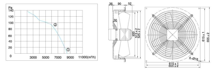 В | Гц | A | Вт | об/мин | Pa | м³/ч | m | дБ(A) | K | Кг | |