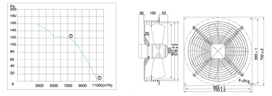 В | Гц | A | Вт | об/мин | Pa | м³/ч | m | дБ(A) | K | Кг | |