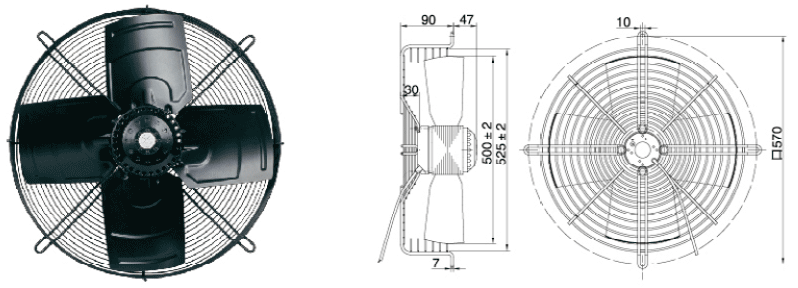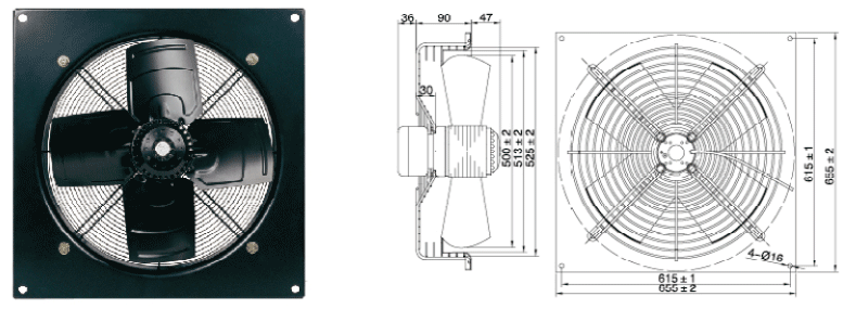 В | Гц | A | Вт | об/мин | Pa | м³/ч | m | дБ(A) | K | Кг | |