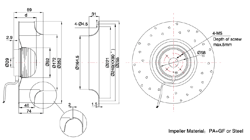 YDWF68L25P4-B250X75 | 1~230 | 50 | 2 | Ⓒ | 54 | 1400 | 0,24 | -25 ~ +70 | 60 | 2,1 | d=74 |