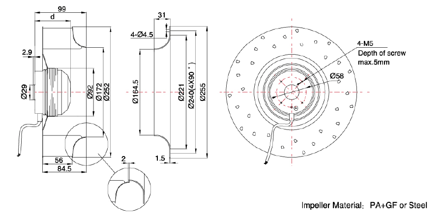 YDWF68L40P2-B250X85 | 1~230 | 50 | 6 | Ⓐ | 225 | 2352 | 0,98 | -25 ~ +60 | 75 | 3,3 | d=94 |